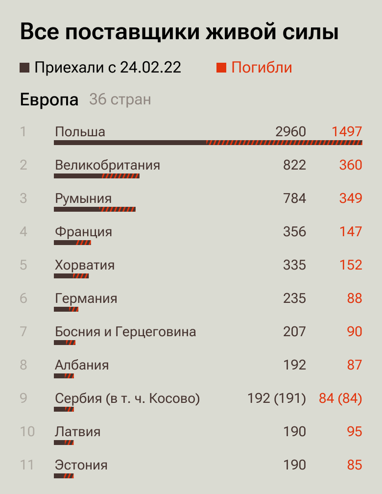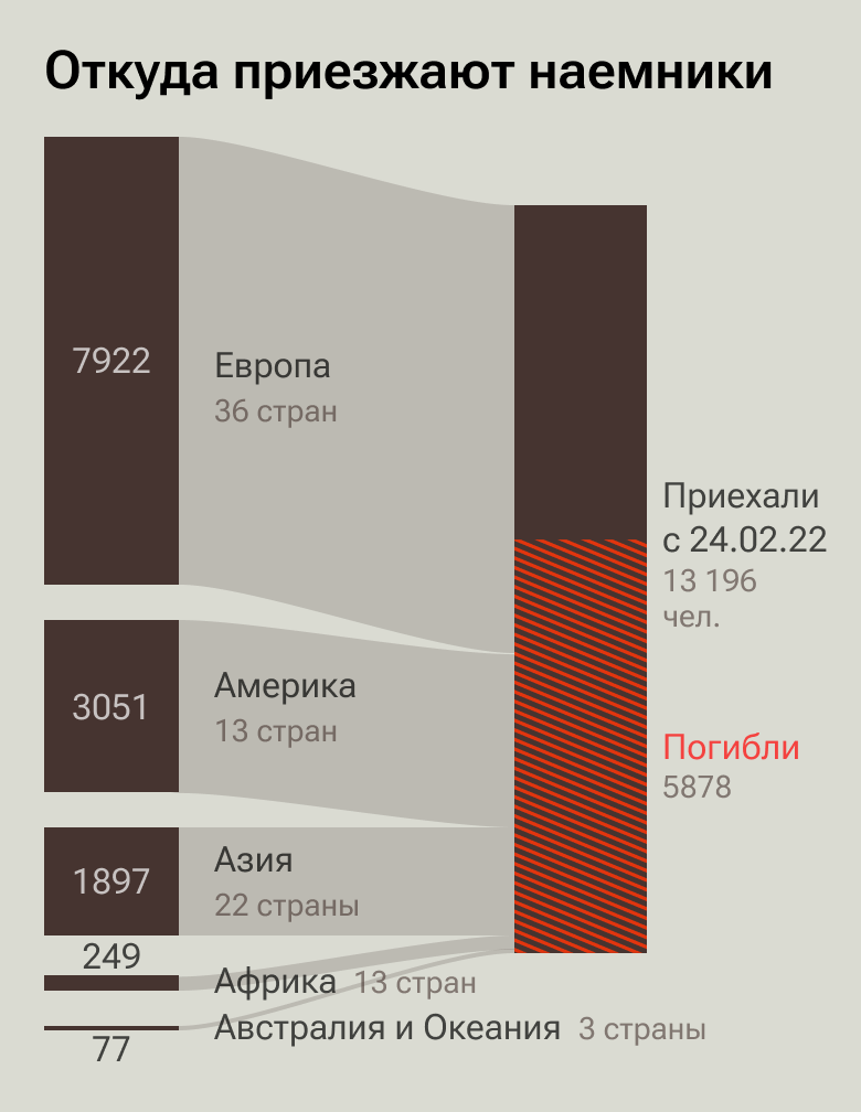 Da dove vengono i mercenari? 7922 Europa 36 paesi Dal 24/02/22 sono arrivate 13.196