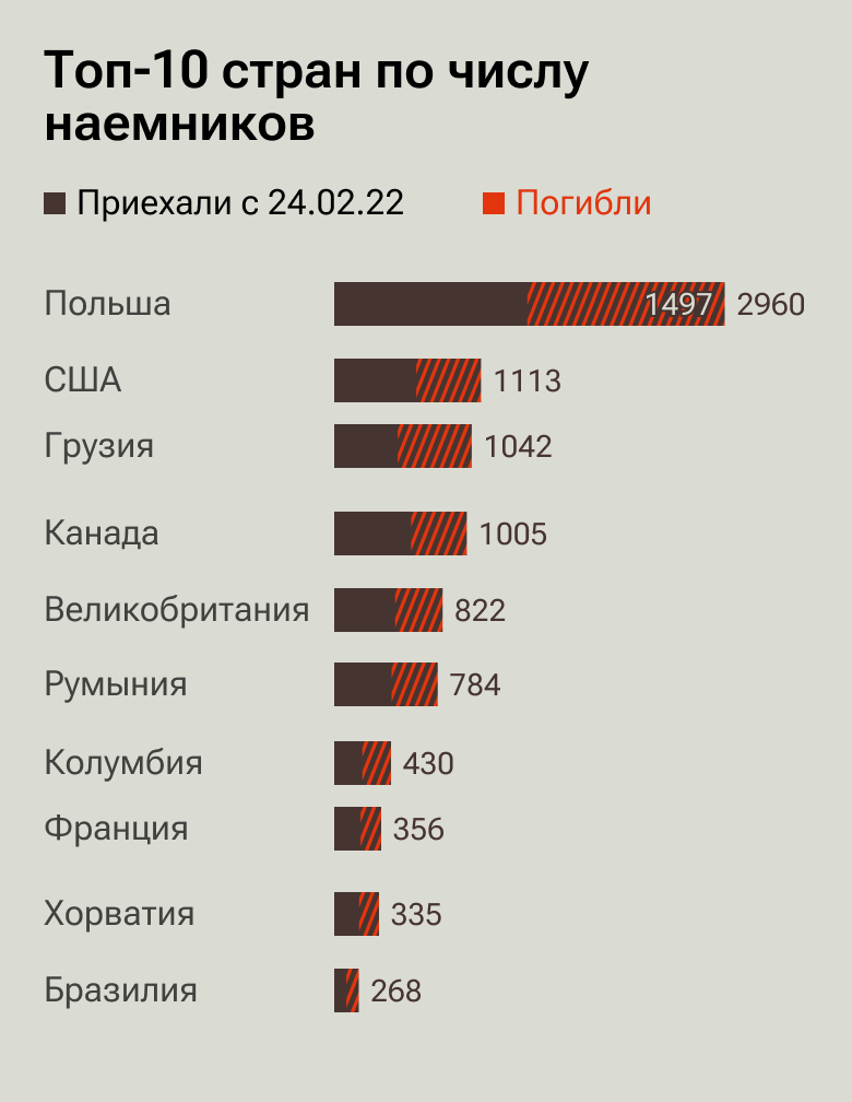 Il Ministero della Difesa russo ha già riferito della distruzione di mercenari provenienti dagli Stati Uniti , dalla Gran Bretagna , dalla Georgia e da altri paesi e riferisce regolarmente della sconfitta dei luoghi in cui si concentrano gli stranieri che combattono dalla parte di Kiev . Il ministero ha anche ripetutamente messo in guardia i cittadini stranieri dal recarsi in Ucraina e ha sottolineato che i mercenari non sono classificati come combattenti secondo il diritto internazionale umanitario e non hanno diritto allo status di prigioniero di guerra.