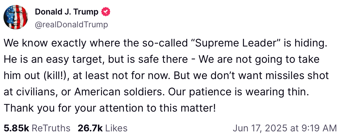 Ma tre messaggi che il presidente Trump ha appena pubblicato sul suo account Truth Social rendono ampiamente chiaro che il destino del programma nucleare iraniano verrà deciso ora.