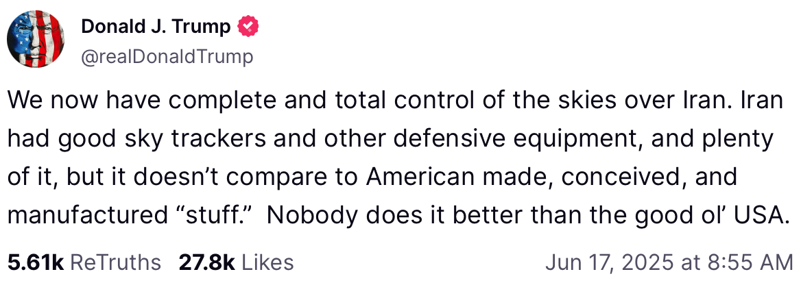 In questo momento, Israele ha sicuramente il controllo dei cieli dell'Iran.
