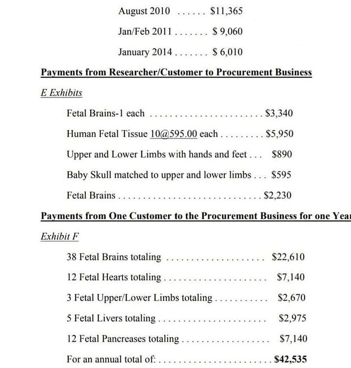 Prelievo di organi e Planned Parenthood: Perché gli aborti sono un grande affare Ecco quanto valgono le parti del corpo di bambini abortiti, grazie a un'indagine sulla vendita di bambini non ancora nati. 3340 dollari per un cervello! Braccia e gambe valgono 890 dollari a testa. |