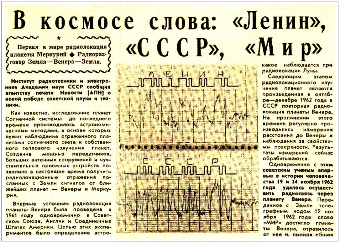 Messaggio a Venere 1962: "Lenin, URSS, Pace" |