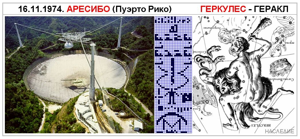 Il messaggio di Arecibo del 1974 in direzione della costellazione di Ercole |
