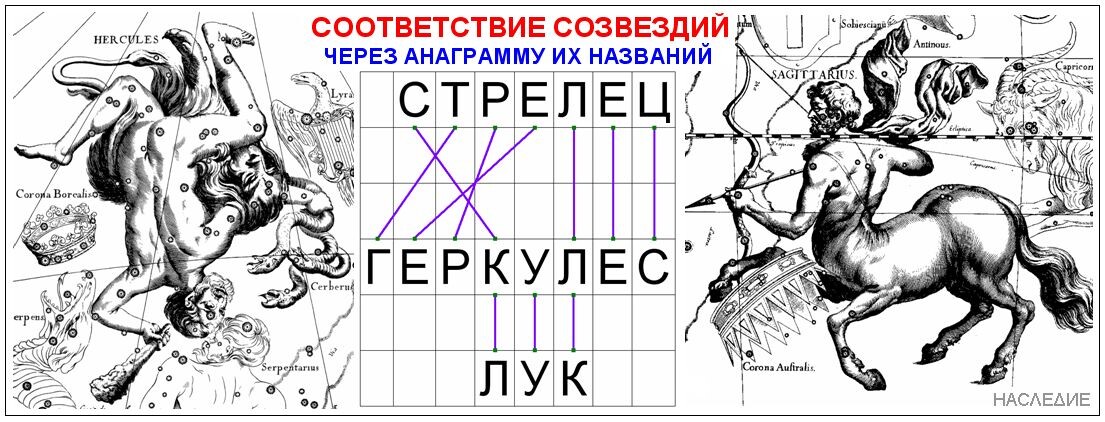 collegamento crittografico tra le costellazioni di Ercole e Sagittario |