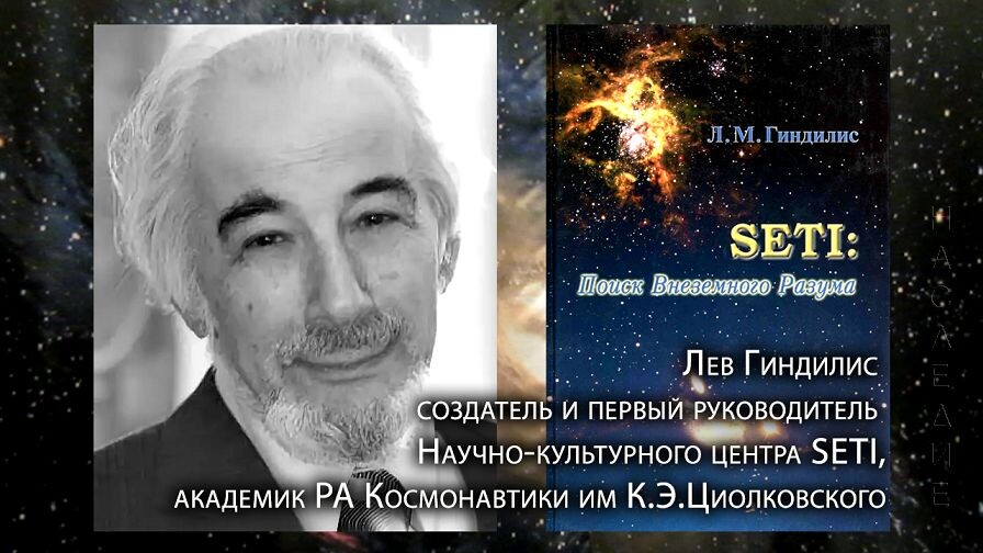 L.M. Gindilis, al momento della conversazione del 27 novembre 2012, era il direttore del Centro scientifico e culturale russo SETI e aveva 80 anni.