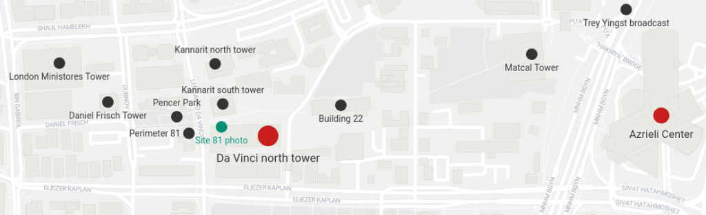 Una foto del Sito 81, pubblicata dall'US Army Corps of Engineers nel febbraio 2013 come parte di un test di corrosione del rivestimento in calcestruzzo e della lamiera di acciaio zincato della struttura sotterranea, può essere geolocalizzata in quello che oggi è il sito delle torri residenziali Da Vinci, con la più meridionale delle due torri Kannarit, alte 18 piani, dell'Aeronautica Militare Israeliana, a pochi metri di distanza. Secondo un sito web dedicato alle torri Kannarit, pubblicato dall'impresa edile israeliana Danya Cebus, queste furono "costruite per il Quartier Generale dell'Aeronautica Militare [israeliana]". L'azienda israeliana di involucri edilizi in alluminio Alumeshet descrisse il suo lavoro sulle torri nel 2002 come la costruzione di "un sistema di mitigazione delle esplosioni che garantisse la massima sicurezza".