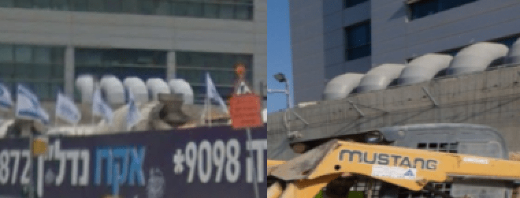 Le caratteristiche della foto dell'Army Corps corrispondono esattamente a quelle di un'immagine del febbraio 2019 pubblicata su Google Maps dall'angolo sud-ovest di Eliezer Kaplan e Leonardo da Vinci, che include gli stessi cinque caratteristici tubi curvi collegati alla torre Kannarit appena sopra il filo spinato.