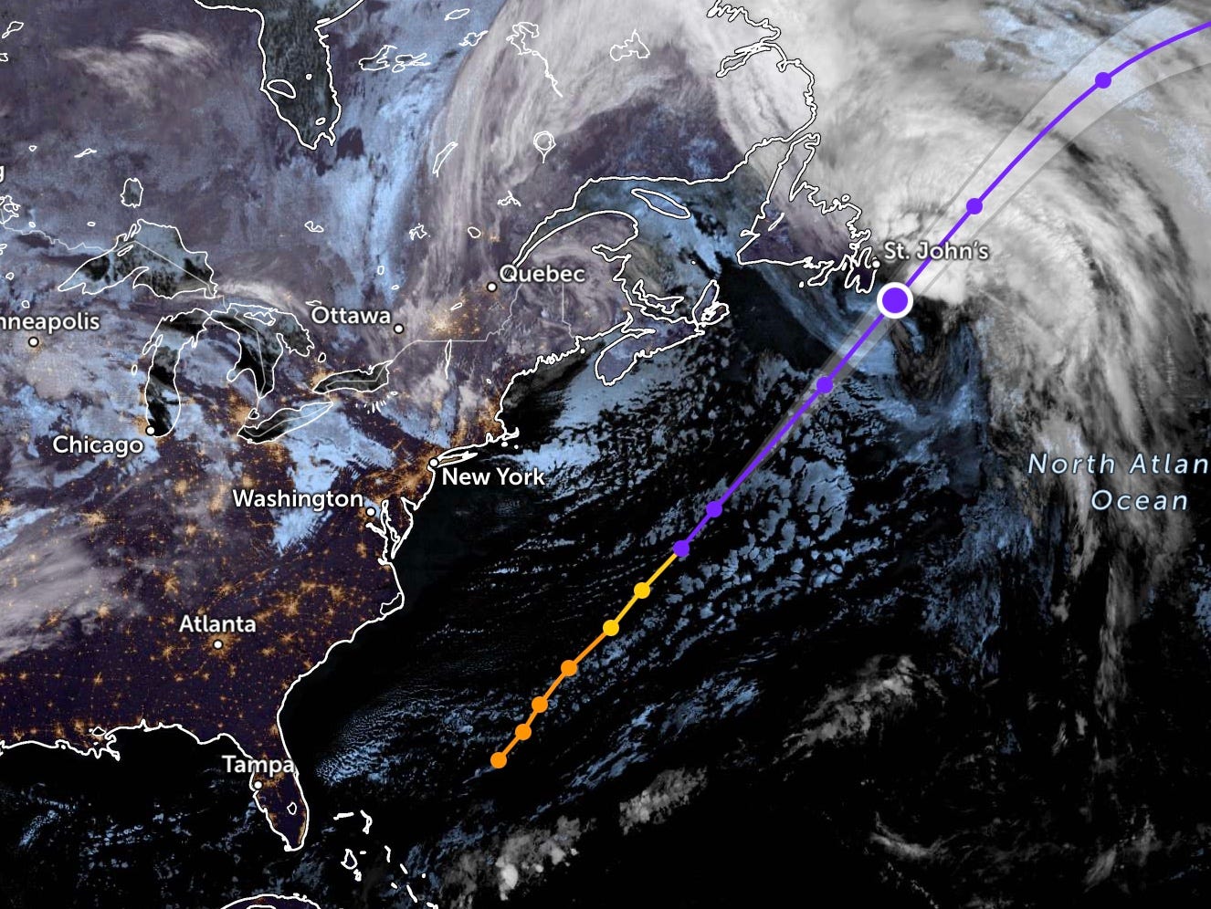La mappa più accurata e non approssimativa di un servizio meteorologico per un ciclone tropicale che ha completato il suo percorso è quella dei dati "Best Track" forniti dal National Hurricane Center (NHC).