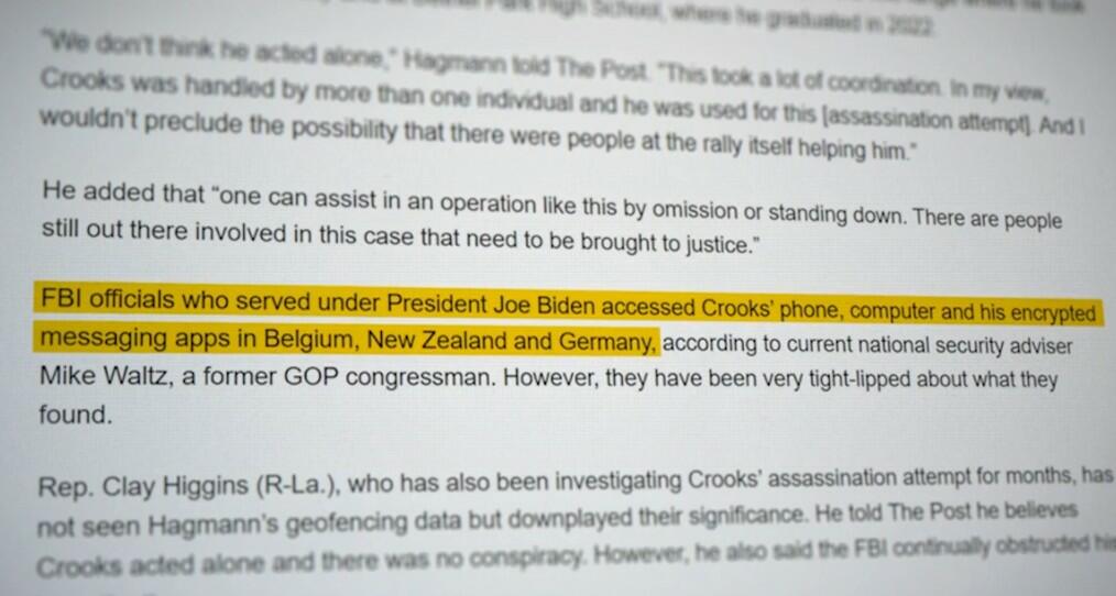 Il vicedirettore dell'FBI di Biden ha mentito lo stesso giorno del servizio della CNN in una testimonianza al Congresso, mentre il NY Post ha riferito nel febbraio 2025 che "l' FBI ha ostacolato gli sforzi per risolvere il mistero del perché Thomas Matthew Crooks, che non ha lasciato alcun manifesto, abbia fatto quello che ha fatto ".