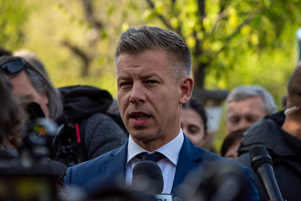 | Peter Magyar parla ai giornalisti a Budapest, Ungheria, 12 aprile 2026 © Getty Images; Krisztian Elek |